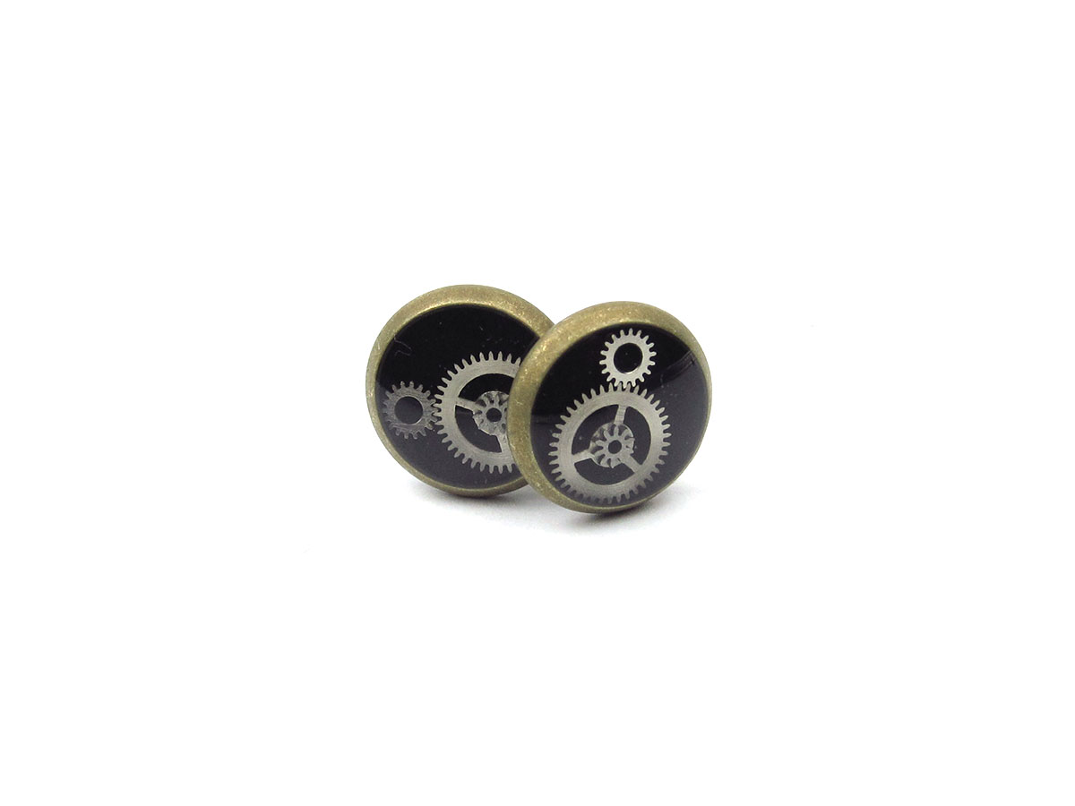 Cercei Steampunk realizati manual din piese de ceas prinse in rasina. Cu sufletul la gura si cu lupa la-ndemana, am ales rotita cu rotita si ne-am straduit sa facem cerceii sa semene cat mai mult unul cu celalalt, doi cate doi, asa cum le sta cel mai bine 🙂