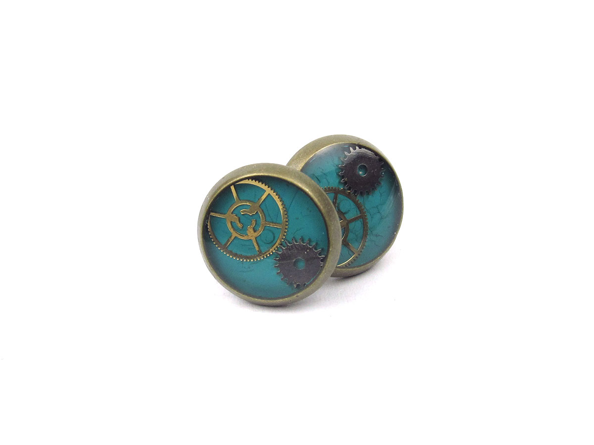 Cercei Steampunk realizati manual din piese de ceas prinse in rasina. Cu sufletul la gura si cu lupa la-ndemana, am ales rotita cu rotita si ne-am straduit sa facem cerceii sa semene cat mai mult unul cu celalalt, doi cate doi, asa cum le sta cel mai bine 🙂