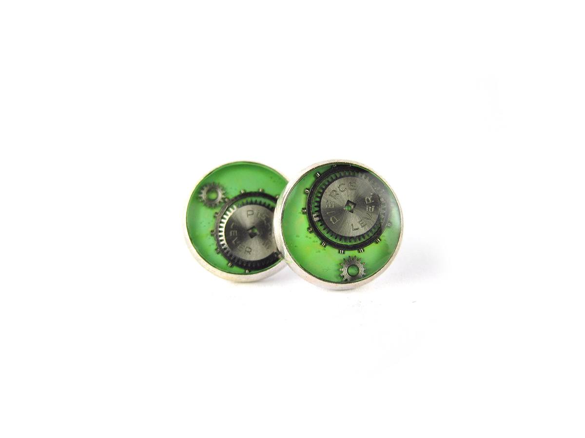 Cercei Steampunk realizati manual de catre noi in atelierul LaCercei.ro din rotite de ceas, doua cate doua, cum le sta lor cel mai bine. Aceasta pereche de cercei poate fi cadoul perfect pentru o amatoare (sau, de ce nu, un amator) de Steampunk. Dimensiunile sunt specificate in dreapta fotografiei de mai sus si te rugam insistent sa citesti toata descrierea acestui produs. Fotografiile redau realitatea insa pot exista diferente de culoare datorita setarilor monitorului tau. Fiecare bijuterie este unicat si data fiind natura elementelor folosite nu-i vom putea reface intocmai. Materialele utilizate sunt: baze metalice, vopsea acrilica, piese de ceas si rasina epoxidica. Bijuteriile trebuie pastrate in locuri ferite de lumina directa a soarelui si de umezeala. Deasemenea trebuie ferite de acizi sau solutii pe baza de acetone si alcooli. Suprafata rasinii se curata cu o carpa moale si uscata.