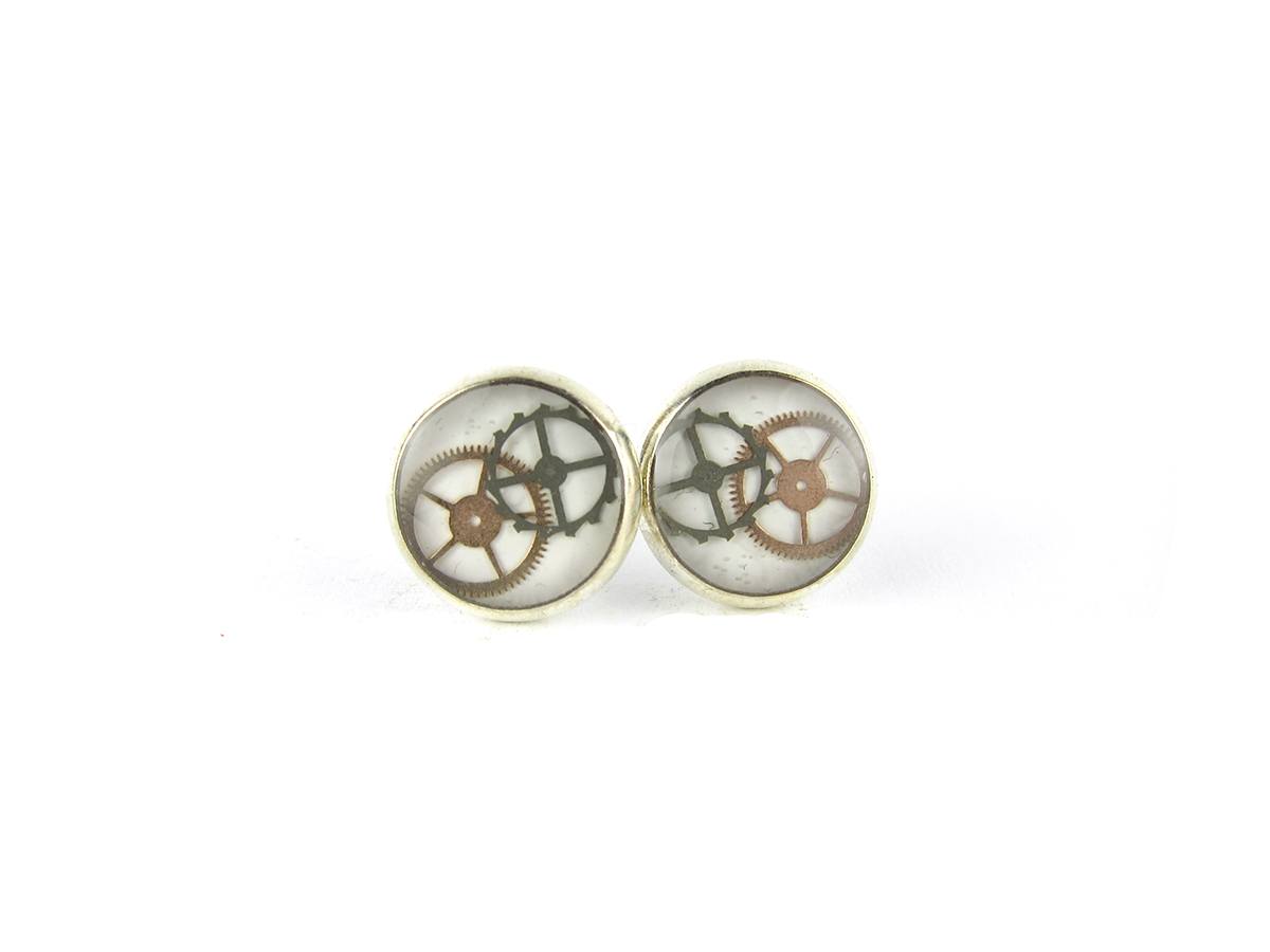 Cercei Steampunk realizati manual de catre noi in atelierul LaCercei.ro din rotite de ceas, doua cate doua, cum le sta lor cel mai bine. Aceasta pereche de cercei poate fi cadoul perfect pentru o amatoare (sau, de ce nu, un amator) de Steampunk. Dimensiunile sunt specificate in dreapta fotografiei de mai sus si te rugam insistent sa citesti toata descrierea acestui produs. Fotografiile redau realitatea insa pot exista diferente de culoare datorita setarilor monitorului tau. Fiecare bijuterie este unicat si data fiind natura elementelor folosite nu-i vom putea reface intocmai. Materialele utilizate sunt: baze metalice, vopsea acrilica, piese de ceas si rasina epoxidica. Bijuteriile trebuie pastrate in locuri ferite de lumina directa a soarelui si de umezeala. Deasemenea trebuie ferite de acizi sau solutii pe baza de acetone si alcooli. Suprafata rasinii se curata cu o carpa moale si uscata.