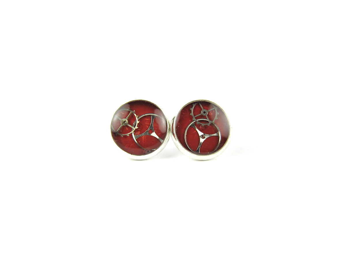 Cercei Steampunk realizati manual de catre noi in atelierul LaCercei.ro din rotite de ceas, doua cate doua, cum le sta lor cel mai bine. Aceasta pereche de cercei poate fi cadoul perfect pentru o amatoare (sau, de ce nu, un amator) de Steampunk. Dimensiunile sunt specificate in dreapta fotografiei de mai sus si te rugam insistent sa citesti toata descrierea acestui produs. Fotografiile redau realitatea insa pot exista diferente de culoare datorita setarilor monitorului tau. Fiecare bijuterie este unicat si data fiind natura elementelor folosite nu-i vom putea reface intocmai. Materialele utilizate sunt: baze metalice, vopsea acrilica, piese de ceas si rasina epoxidica. Bijuteriile trebuie pastrate in locuri ferite de lumina directa a soarelui si de umezeala. Deasemenea trebuie ferite de acizi sau solutii pe baza de acetone si alcooli. Suprafata rasinii se curata cu o carpa moale si uscata.