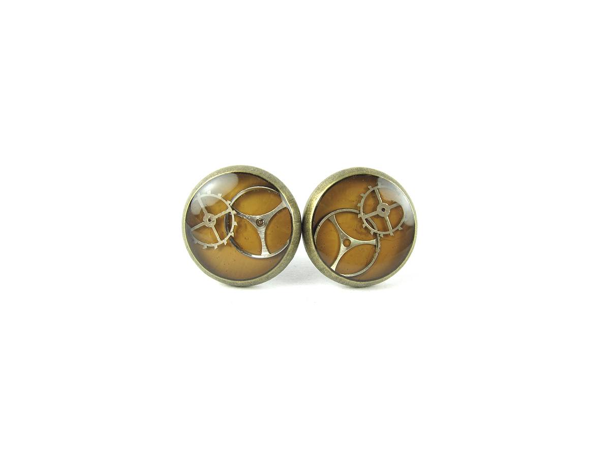 Cercei Steampunk realizati manual de catre noi in atelierul LaCercei.ro din rotite de ceas, doua cate doua, cum le sta lor cel mai bine. Aceasta pereche de cercei poate fi cadoul perfect pentru o amatoare (sau, de ce nu, un amator) de Steampunk. Dimensiunile sunt specificate in dreapta fotografiei de mai sus si te rugam insistent sa citesti toata descrierea acestui produs. Fotografiile redau realitatea insa pot exista diferente de culoare datorita setarilor monitorului tau. Fiecare bijuterie este unicat si data fiind natura elementelor folosite nu-i vom putea reface intocmai. Materialele utilizate sunt: baze metalice, vopsea acrilica, piese de ceas si rasina epoxidica. Bijuteriile trebuie pastrate in locuri ferite de lumina directa a soarelui si de umezeala. Deasemenea trebuie ferite de acizi sau solutii pe baza de acetone si alcooli. Suprafata rasinii se curata cu o carpa moale si uscata.