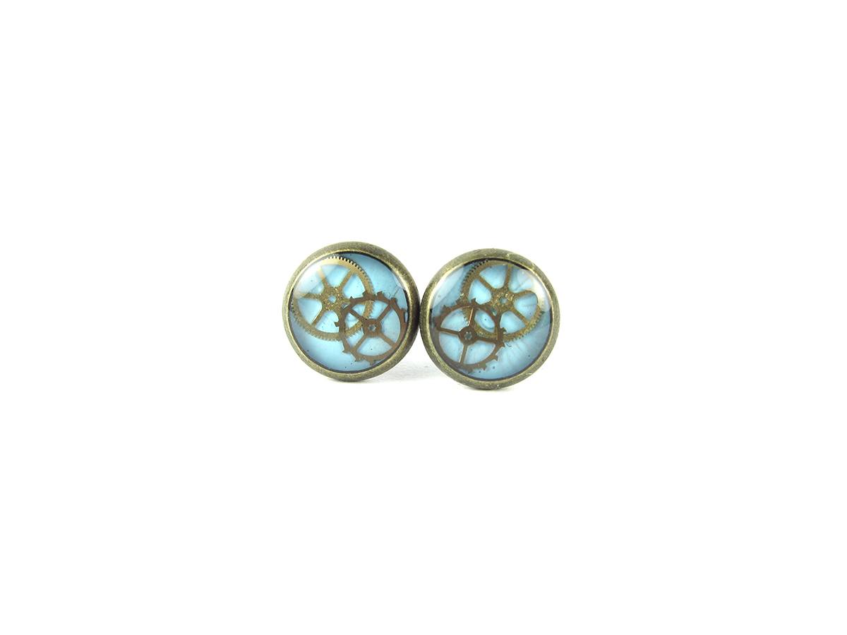Cercei Steampunk realizati manual de catre noi in atelierul LaCercei.ro din rotite de ceas, doua cate doua, cum le sta lor cel mai bine. Aceasta pereche de cercei poate fi cadoul perfect pentru o amatoare (sau, de ce nu, un amator) de Steampunk. Dimensiunile sunt specificate in dreapta fotografiei de mai sus si te rugam insistent sa citesti toata descrierea acestui produs. Fotografiile redau realitatea insa pot exista diferente de culoare datorita setarilor monitorului tau. Fiecare bijuterie este unicat si data fiind natura elementelor folosite nu-i vom putea reface intocmai. Materialele utilizate sunt: baze metalice, vopsea acrilica, piese de ceas si rasina epoxidica. Bijuteriile trebuie pastrate in locuri ferite de lumina directa a soarelui si de umezeala. Deasemenea trebuie ferite de acizi sau solutii pe baza de acetone si alcooli. Suprafata rasinii se curata cu o carpa moale si uscata.