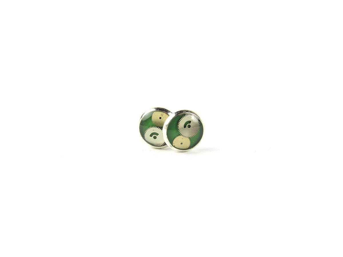 Cercei Steampunk realizati manual de catre noi in atelierul LaCercei.ro din rotite de ceas, doua cate doua, cum le sta lor cel mai bine. Aceasta pereche de cercei poate fi cadoul perfect pentru o amatoare (sau, de ce nu, un amator) de Steampunk. Dimensiunile sunt specificate in dreapta fotografiei de mai sus si te rugam insistent sa citesti toata descrierea acestui produs. Fotografiile redau realitatea insa pot exista diferente de culoare datorita setarilor monitorului tau. Fiecare bijuterie este unicat si data fiind natura elementelor folosite nu-i vom putea reface intocmai. Materialele utilizate sunt: baze metalice, vopsea acrilica, piese de ceas si rasina epoxidica. Bijuteriile trebuie pastrate in locuri ferite de lumina directa a soarelui si de umezeala. Deasemenea trebuie ferite de acizi sau solutii pe baza de acetone si alcooli. Suprafata rasinii se curata cu o carpa moale si uscata.