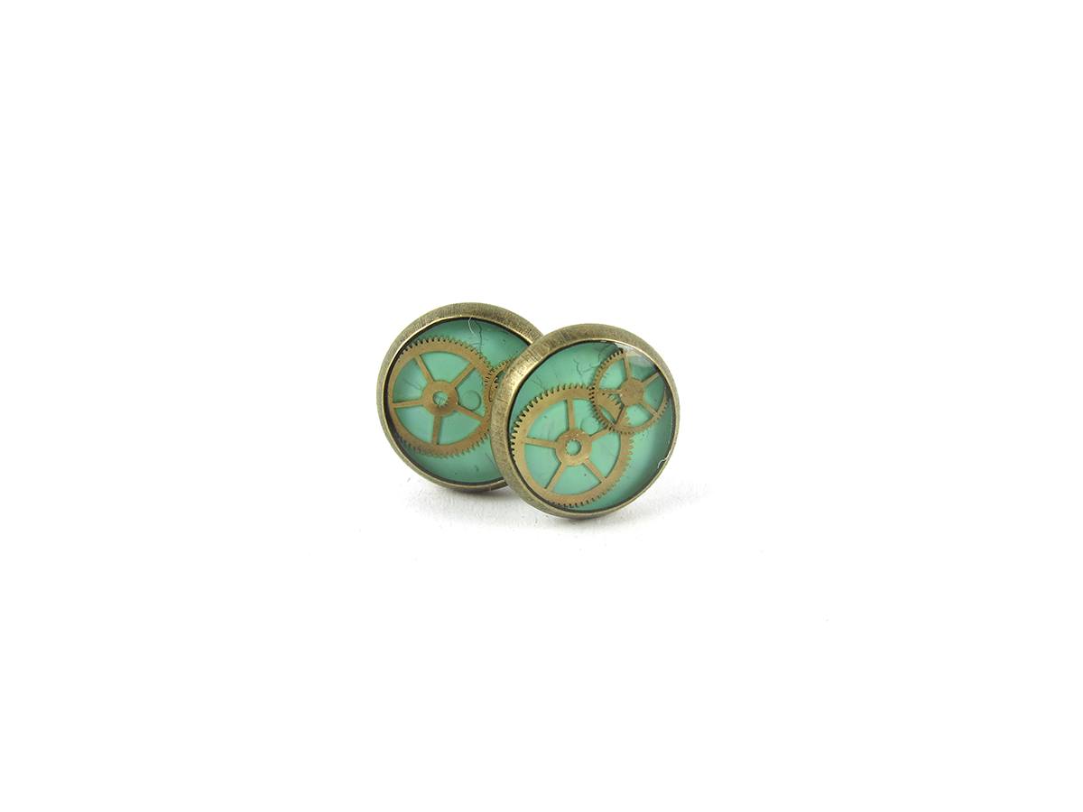 Cercei Steampunk realizati manual de catre noi in atelierul LaCercei.ro din rotite de ceas, doua cate doua, cum le sta lor cel mai bine. Aceasta pereche de cercei poate fi cadoul perfect pentru o amatoare (sau, de ce nu, un amator) de Steampunk. Dimensiunile sunt specificate in dreapta fotografiei de mai sus si te rugam insistent sa citesti toata descrierea acestui produs. Fotografiile redau realitatea insa pot exista diferente de culoare datorita setarilor monitorului tau. Fiecare bijuterie este unicat si data fiind natura elementelor folosite nu-i vom putea reface intocmai. Materialele utilizate sunt: baze metalice, vopsea acrilica, piese de ceas si rasina epoxidica. Bijuteriile trebuie pastrate in locuri ferite de lumina directa a soarelui si de umezeala. Deasemenea trebuie ferite de acizi sau solutii pe baza de acetone si alcooli. Suprafata rasinii se curata cu o carpa moale si uscata.