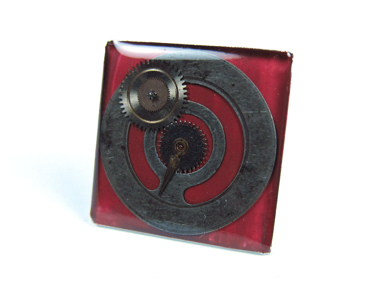 Inel Steampunk realizat manual din piese de ceas prinse cu grija in rasina. Toate piesele ce pot fi regasite inauntru provin din ceasuri adevarate, demontate chiar de catre noi!